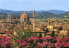 Maiestuos se inalta Domul, dar care nu are nimic comun cu cel din Milano, acea dantelarie in marmora, care iti seduce ochiul Domul din Florenta are personalitate prin unicitate, avand comun doar stilul arhitectonic, gothic. Din 1870, Domul este placat cu marmora toscana de culoare roza, alba si verde, realizandu-se o policromie care-ti incanta ochiul si sufletul. Arhitectul toscan Bruneleschi a conceput in stilul Renasterii, constructia artistica, demna de urmat ca stil si a decorat-o cu o bogata colectie de picturi, la loc de cinste aflandu-se tabloul Judecata de Apoi, a maestrilor Vasari si Zuccari. In apropierea Domului se afla Botezatorul (Aghiazmatarul). Familia emblematica a Florentei a fost Familia Medici, care de prin 1444 si pana in 1700, a stralucit pe firmamentul Toscanei, contribuind la inflorirea sociala si culturala. Exponentul de varf al acestei familii a fost Lorenzo Magnificul. Palatul Medici-lor are o Capela care este si loc de veci, de ornamentarea ei ocupandu-se Michelangelo. Un adevarat muzeu al eternitatii este Biserica Sfanta Cruce, in care isi afla odihna vesnica stele ale culturii toscane si universale: G. Galilei, Michelangelo, care a trecut in nefiinta in anul 1564 , an in care Galileo se nastea. Li s-au alaturat G. Rossini, Machiavelli, Bruneleschi. Faima pamanteana le este decorata cu celebre lucrari, reprezentativa fiind Moartea Sfantului Francisc a lui Giotto.