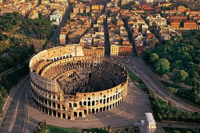 Coloseum-ul este o marturie vie a ingineriei romane de acum 2000 de ani. Pentru constructie s-au folosit cimentul, piatra, caramizile si marmora, realizedu-se o mega structura, in exterior fiind decorat cu coloane dorice, ionice si corintiniene, putand adaposti pe locuri 50,000 de oameni. Ocupantii acestor locuri traiau in extaz desfasurarea luptelor dintre gladiatori, criminali animale salbatice si foarte multe si crancene lupte intre crestini si animale salbatice Sutele de mii de crestini martirizati au sfintit cu sangele lor Coloseum-ul, de aceea, in fiecare an, in noaptea de Inviere, insusi Papa, oficiaza Sfanta Liturgie, pe o esplanada, in arena jertfelor de credinta.